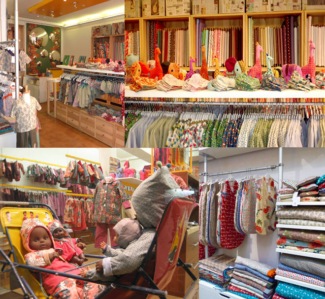 Parce que la créatrice de la marque, Pascaline Delcourt déniche de supers tissus (imprimés vintages, Liberty…) et qu’elle en fait des p’tits vêtements ravissants mais aussi parce que sa boutique est une vraie caverne d’Ali Baba, c’est l’occasion de se faire plaisir et de gâter les nains.