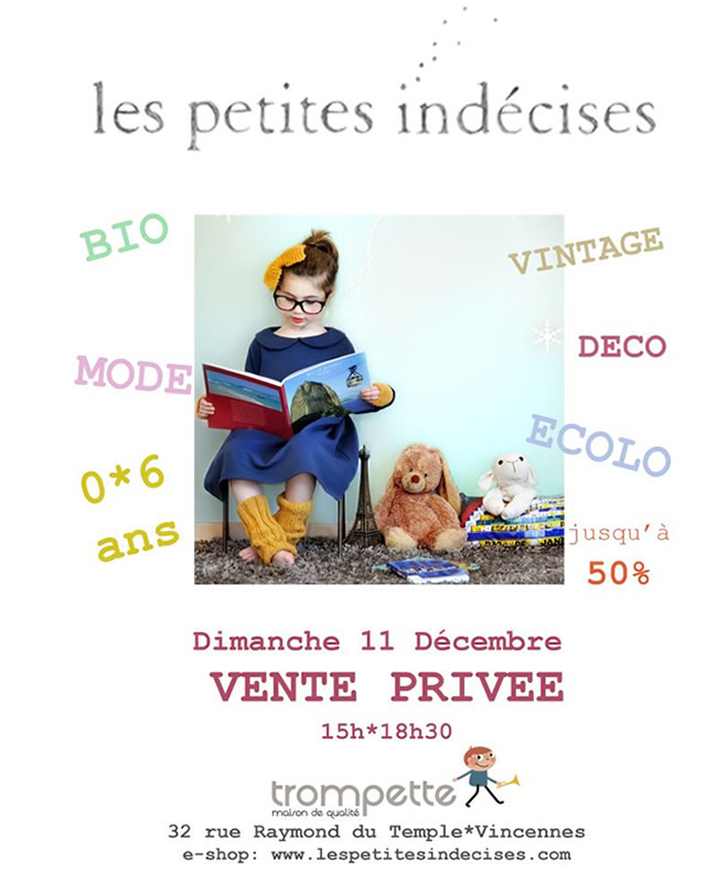La vente privée Les Petites Indécises aura lieu le dimanche 11 décembre prochain.